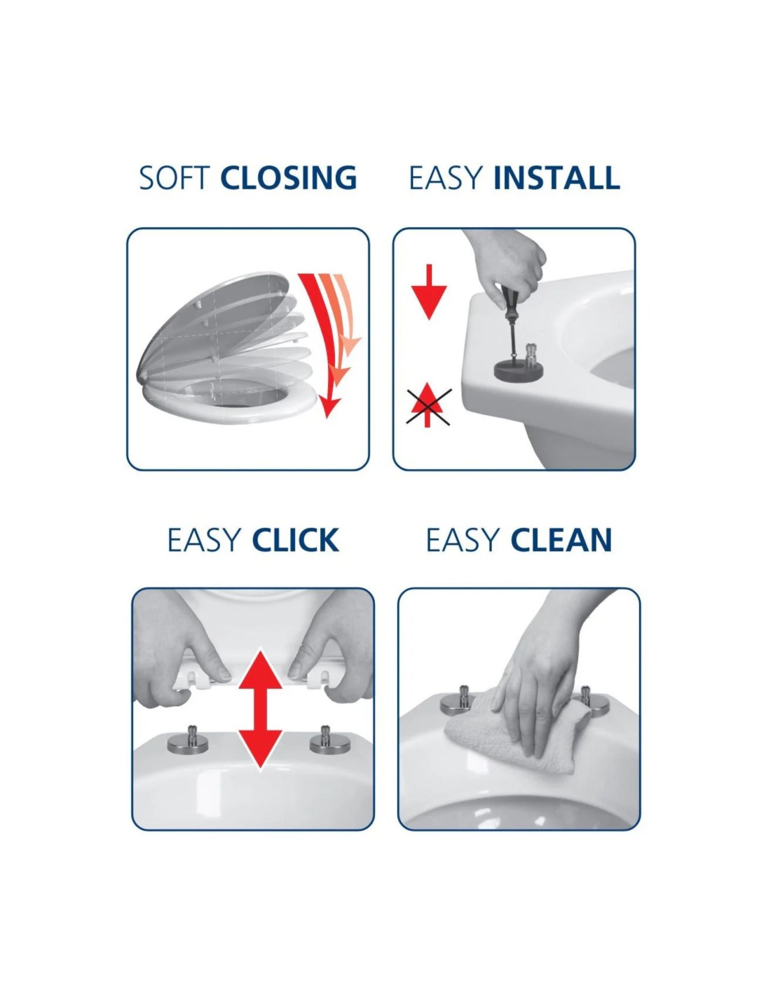 - Fermeture douce (Soft Close) pour un abattant qui se referme sans bruit